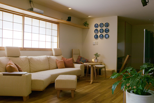 障子を閉めると落ち着いた雰囲気に。障子はすべて壁に引き込むことが出来る。 |