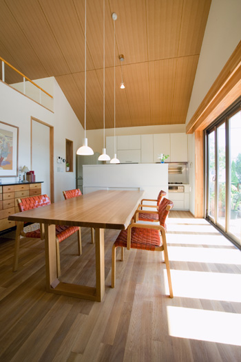 天井高の高いダイニング。広々としたスペースでゆったりと食事ができる。