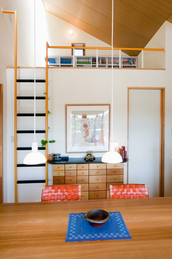 ロフトの屋根勾配を生かしたことにより、多くの収納スペースが確保できた。