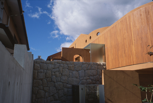 住宅地ではあったが周辺が少々人の出入りの多い場所がらで道路に対しては建物を閉鎖的な形としている。しかし道路との充分な空きとそこにつくられた植樹帯によって道行く人にとってもここちの良い環境を提供できたと思っている。当然道路境界線上に塀状のものは存在しない。