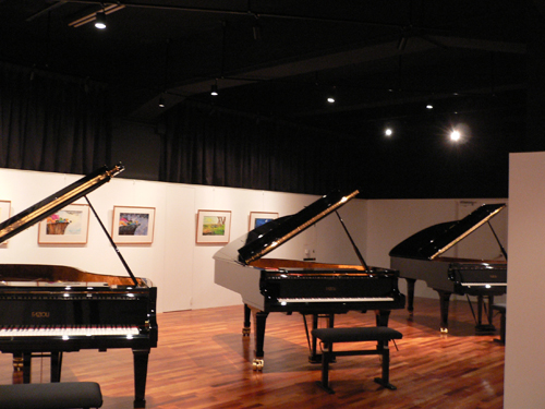 世界で一番大きなコンサート用ピアノ F308を収めるスペースは専用の特別コーナーとした。