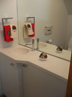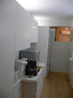 | 左:トイレの洗面台。右:階段(撥水和紙を使用) |