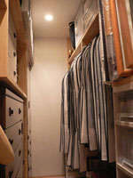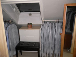 | 勾配屋根の部分はパイプを取り付け、クローゼット、物入れに活用。 |