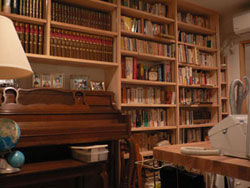 左:書斎脇の収納スペース。持ち家具に合わせて棚を取り付けている。