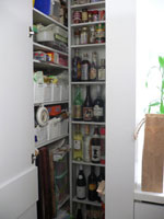 | 造り付の食品庫には沢山の瓶、缶、調味料などが保存できる。 |